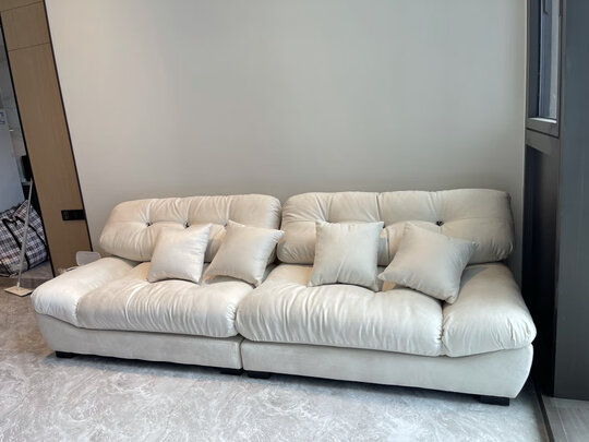 沙发非常不错,极简风的沙发,看上去非常的大气。物流速度也挺快的。安装师傅们非常的专业。沙发也挺结实的。