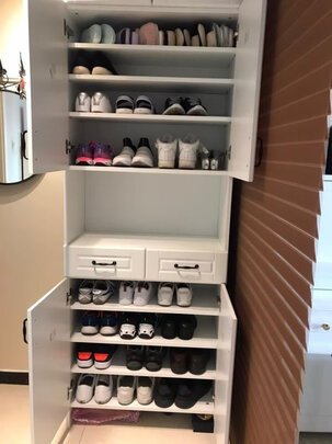 这款鞋柜不错,可以放很多些,而且没有异味。质量也很棒。安装也很简单,不懂的问客服,客服也很耐心的回答。服务态度不错。