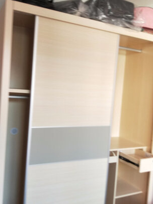 11月购买,装修的关系,1月才联系了送货安装,物流有些慢,货到当地后又说货车不敢进城,要晚上10点以后(以后)才能送,结果等到了凌晨12点半才送来,寒冬腊月,那个冷。第二天的安装师傅也是晚上22点才来装,态度很好,装到了12点多才装完。;书柜本身看起来很漂亮,照片能看到的前面板是原木,其他部分是人造板,有点薄,横向摆书的承重板尤其明显,摆满书后中间有一点往下的挠度(变形),于是又自己买了很多直角扣(见图三)来加固,门与门之间的缝隙有点大,有一扇门有一点磨下面的抽屉,商家承诺过完年安排人来调整,这商品总体来说还不错,挺上档次