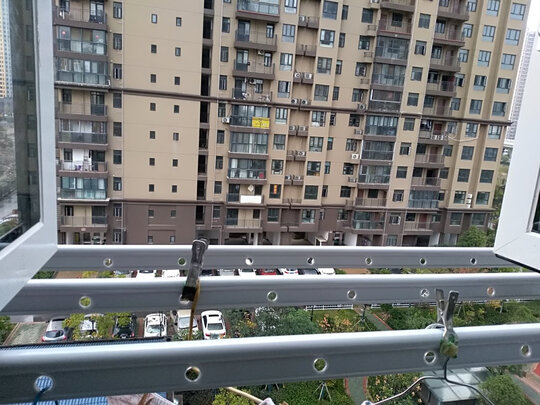 安装中遇到了困难,后来又买了配件,师傅终于给装好了。请大家记得装室外凉衣架,最好要在封阳台之前,这样安装就更方便一些