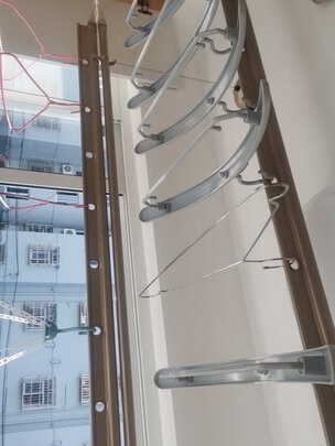 师傅刚帮我们装好,很专业,花了不到20分钟的时间。摇起来很顺滑,要几圈就摇下来了。晾衣杆做工很好,很厚实。银色挺好看的,当时怕金色的掉色,就选了保守银色。师傅说这个牌子质量好。