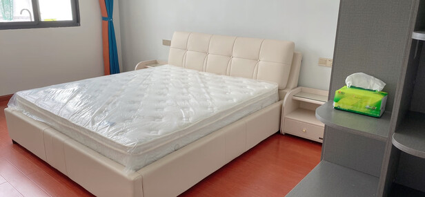 床是真皮的很漂亮,和家里整体风格很搭,值得入手!073客服很专业,很有耐心,安装师傅做事麻利!