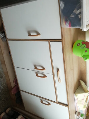 颜值很高的一款鞋柜。做工细致,没有瑕疵。摆放在门口尺寸大小正合适,容量很大,能够摆放很多鞋子。值得五星好评。