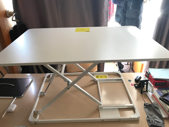这个桌子看起来还不错,重量也挺沉的,现在还没有开始使用。正在研究怎么来设计它的高度,目前看起来还挺好的,颜值也OK,感觉是不是应该买个黑色的会更好一点。算了算了,反正已经买了,白的也没有差到哪去。