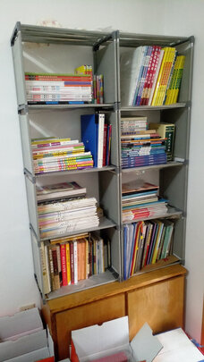 比预想的要好能装好多书,很规矩 挺 实用的,用缠绕电线的小铁丝绳,缠紧了两个书架更稳固了