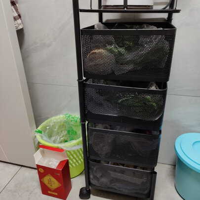 原先放满地上的各种菜有了归处。置物架小巧灵活,安装方便。 安装4个轮子就可以用了。材料比较扎实,希望能耐用一点,不要生锈。