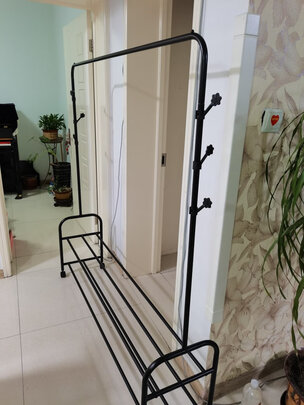 京东自营送货快,购物方便,衣架买来后自己安装,安装很简单,结实,颜色也不错,有好几个挂钩,挂衣服,挂雨伞,挂书包都可以,真是很方便了。