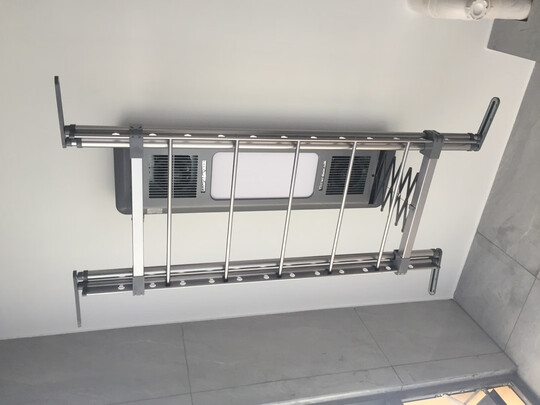家里原来是一个衣架晒衣服占了整个阳台,决定换一个电动衣架,纠结了很久,最终选择了这款金贵夫人的电动晾衣架,我选了冰川银,很好看的颜色,外观也很好看,晾衣杆和架子都很硬实,不是那种软软的,而且中间还有杠杠也可以挂东西放东西晾,升降功能很好用,还可以吹风,灯也是很亮的,比我原来装的灯亮很多,安装师傅技术也很好,一会就安装好了,操作熟练专业,好评,很满意!!