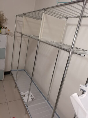 架子还很扎实的,也确实能装不少衣服。安装比较方便,价格非常的优惠,临时用非常的适合。需要的话,以后还会购买店铺其他商品~