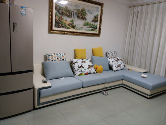 已经收到沙发,物流顺畅,上门安装师傅认真负责。颜色和宣传相符,材质也很棒。放在客厅很何时,非常满意