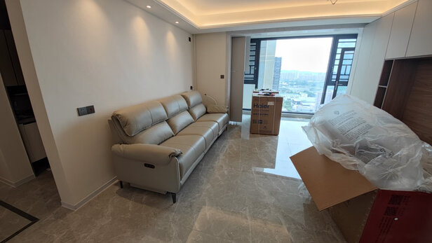 沙发已经装好,全屋第一个到家的家具,是我想要的样子。安装当天两位师傅认真仔细,迅速把沙发组合好了