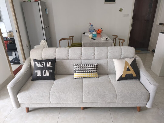 沙发很舒服,不是那种特别软的,很喜欢这种硬度,不会一座就塌下去的那种,不错不错,物美价廉