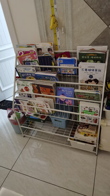 很好,容量很大,放了几十本绘本,而且铁架比塑料书架好的一点就是书不会掉