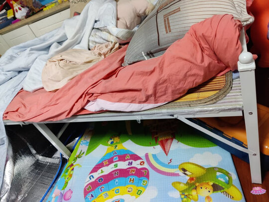 疫情期间买哒,朋友家封控管理回不去,就在我家里住了一段时间,我果断下单来了个单人床~;快递速度特别给力~;;床是硬板床,铺了一层褥子,睡着就特别舒服?;,觉得硬还可以再铺厚一点,虽然是折叠的简易床,但睡上去一点也不简易,很舒服呢,朋友不在这住我都没收起来,还是会每天躺上面休息???