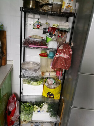 架子很高,管壁很厚。安装非常简单,装起来之后架子挺稳的,可以放在玄关处,摆一些小物品,也可以放在餐厅,当一个置物架,也可以用于收拾凌乱的厨房,总之还是比较推荐购买的,五层架子,能装很多东西,我买来是放在厨房了,把厨房的各种调味料,烤箱破壁机,电饭煲啊,都放在架子上了,承重可以。