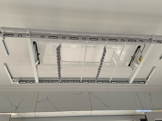 晾衣架到货了,满满的期待打开包装很精致,安装师傅安装单位,非常耐心啊。试用后升降功能挺好,很平稳,39寸大灯很亮,颜值真的很哇塞呢,希望耐用,另外开关可以根据自身需要换位置,很方便哇。