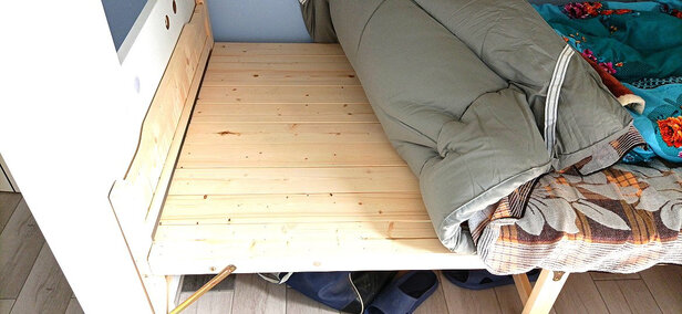床很结实,整体质量很好。放在我的二层床下刚刚好,只有木头的味道,其他味道没有。五星好评!
