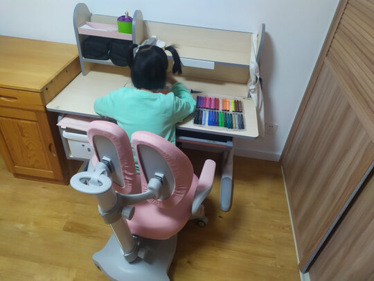 关注很久的学习桌终于安装使用上了,孩子非常喜欢。安装完忙碌的收拾桌面放好书本,坐在小椅子上看书。京东送货上门这一点超级赞 安装师傅特别的负责任,装好后还会根据孩子的身高调整高度。京东值得一直信赖。