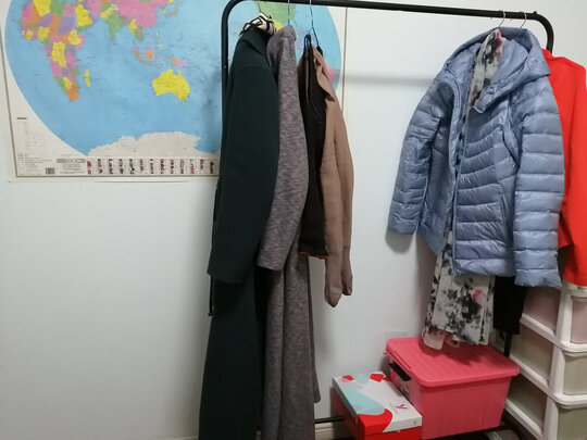 装的时候费劲,硬把自己逼成女汉子。架子不太能挂多,或者冬天的衣服也不太行,容易晃,担心横杆会短。少点衣服或者夏天衣服应该没问题。