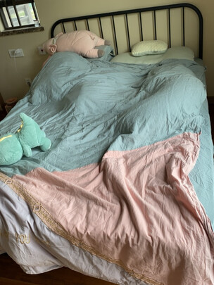 第一次收到快递的时候床头的脚歪了,卖家第二天就补发了一件,睡起来还可以不会吱嘎吱嘎的响。床垫推荐买硬一点厚一点的,不然会明显感觉到床板的空隙。