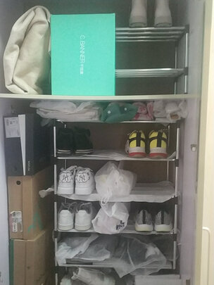 年前买的了,一直用到现在才评价。当时因为鞋子太多放家里看着心烦,直接用京东买了一个,隔天就到了。而且安装特别简单,重要的是能放不少鞋,太实惠了!
