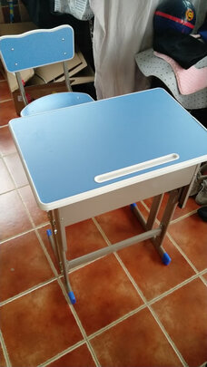 材质质感:桌面应该是颗粒的,周围和上面应该是塑料包围。铁支架,总体还不错,晾几天,去去甲醛就好。;外观款式:通用款式,跟学校的差不多。;使用感受:安装完,整体稳固,桌面较平,总体还算满意。;送货速度:京东物流还是快。;安装服务:自己安装,看着说明书就能安装,还是比较方便的。毕竟没用太复杂的要求。就是扭桌面螺丝时,注意下白色凹槽那里,可能会把螺丝扭出来。