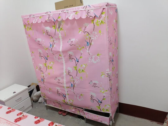 布衣柜收到了,还没有组装,看起来还是很不错的。