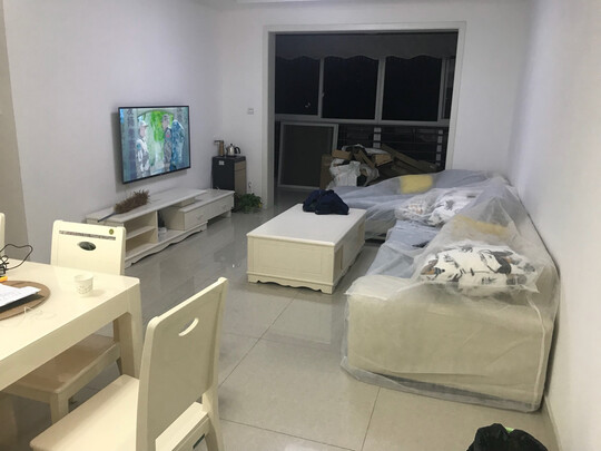房子暂时不住,所以沙发安装好之后用原来的包装毯子接起来还不错,沙发总体的感觉也挺好,运输过程中有一个靠枕金属支架压坏了,已提交售后。