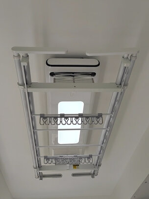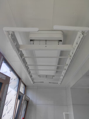 发货非常快,因为家中还要装其他东西,跟安装师傅改约了好多次,师傅也没有厌烦,今天按时来装好了。;外形外观:白加灰配色,干净清爽;承重能力:目前还没使用,后期再评价,就是伸长杆最长时和我做的柜子打架了......;产品材质:外观无受损;安装服务:安装师傅很专业,耐心教我怎么使用;其他特色:可语音可遥控,语音控制要说得很清楚,按键还是很方便的;另外客服古拉的服务很不错,有问必答,很快回复?