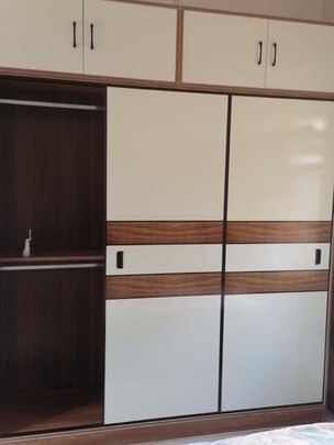衣柜一到,马上就通知我收货。安装师傅服务态度很好,装了几个小时才装好,辛苦了。衣柜高2.5米,宽1.6米,很大气,比实体店便宜不少。质量也不错,比较结实,满意的一次购物。
