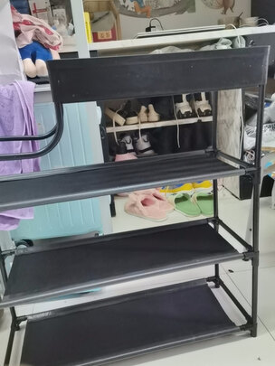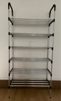 鞋架收到了,质量很好,组装很简单。买了6层的,组装后长宽高都很合适,一层大概能放三四双鞋子,比较省空间。送货速度快,第二天就到货,很不错的购物体验!