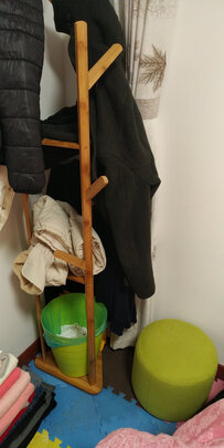 冬天平时大人小孩的衣服堆在沙发上看着很不舒服,正好看到这种简易版的衣架,平时不怎么穿的衣服可以这样临时挂着,也不怎么占地方,还可以推来推去,很方便!!