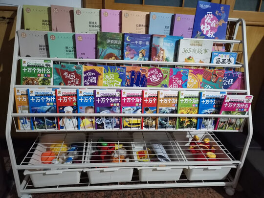 结实耐用,整理图书方便,宝宝自己就可以选书。大容量装了好多书,收纳和展示共存;实用且耐用;感觉比塑料的好用好多;价格还不贵~