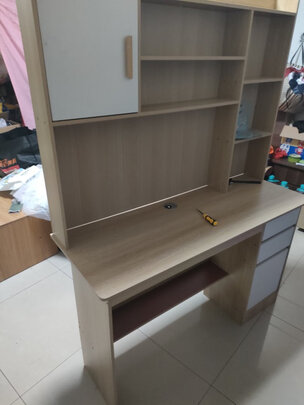 组装很简单,商家还赠送了小工具。桌子整体来说质量挺好的,我是靠墙放着的,特别稳当,挺牢固的。