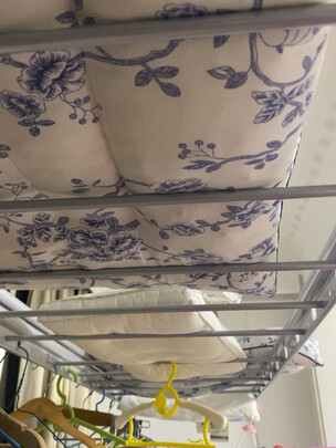 这个衣架买了很划算,呃用两根中间有横杠的,然后呃晒起来被子真的很方便。