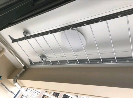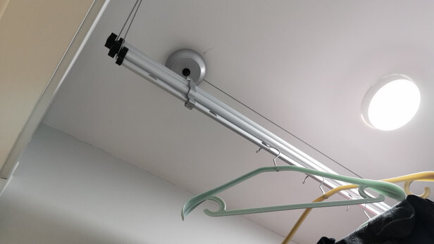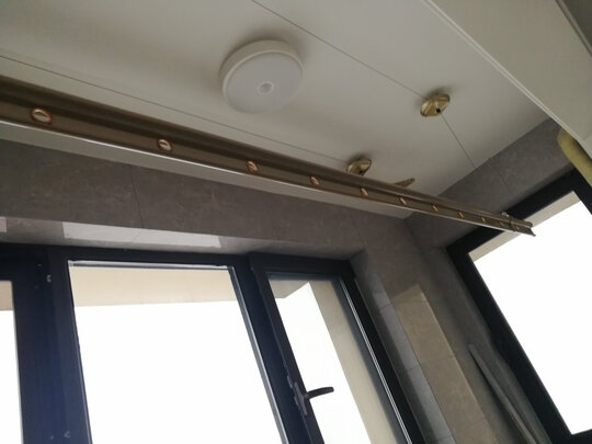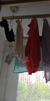 先看图吧,颜色很正,看着很舒服。晾衣杆是太空铝材质,据说质量很好。靠窗的杆子有两根,不带孔的是晾被子专用,忘记单独放下来拍照了,大家凑活看哈,感觉晾被子很方便。