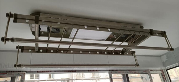 晾衣架已经安装完毕,挺不错的一款,原本计划做隐藏内嵌的,结果有点太浪费吊顶板,所以做了明装的,效果一样杠杠的,装好试了试机,噪音也挺小的,总的来说很好的一款宝贝,有朋友需要会强烈推荐,客服态度也挺好,双手好评!