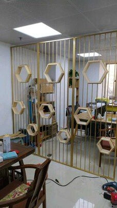 - 商品名称:桢知 北欧屏风隔断置物架花架入户隔断玄关装饰餐客厅创意镂空隔断金色 测量费 组装