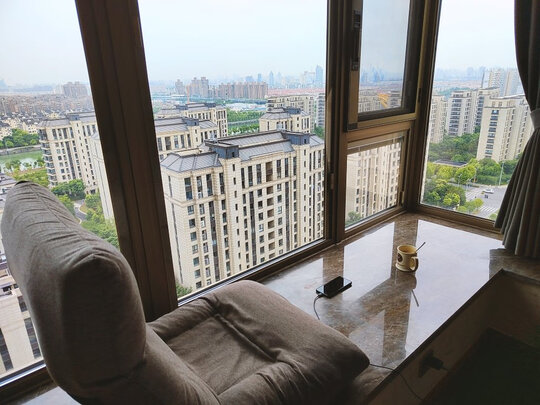 很舒服,坐着非常适合办公。飘窗上放着不大不小刚刚好