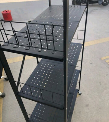 立架很结实,平板架很结实,但是有点薄,只可以承重,搬动的时候还是要拿两侧的立架,很稳固,有送轮子,我没有安装,做工也很好,黑色磨砂的。唯一就是板子太薄了。。