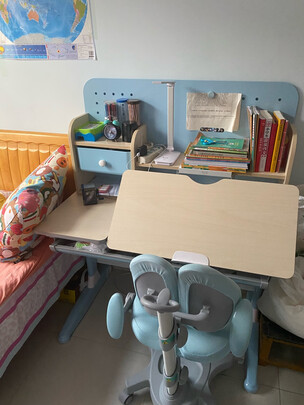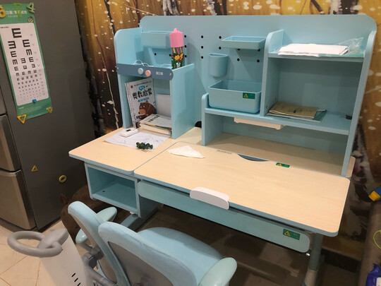 非常好的桌子,桌椅可调节,无气味,大小正好,桌上收纳很多东西,颜色也非常喜欢