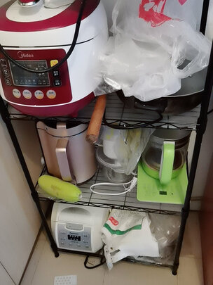 很实用的小置物架。;厨房收纳原本很不好,发现了这个置物架,不高,也不宽,拿东西方便,很适合这块地方。;5层设计简单放些小电器很合适,收纳能力极强
