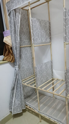 衣架不错,很结实,比那种用塑料接头的简易衣柜好很多,安装说明书不太对盘,安装小研究了一会儿