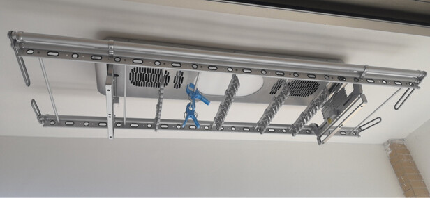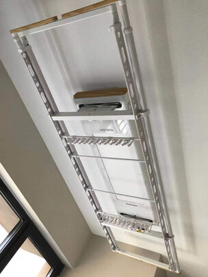 收到货的当天,就有师傅给我电话约时间上门安装了,非常顺利,这个升降衣架颜值也在线,可以晾好多衣服,还有晾被子的专用杆。用遥控器试了下,非常顺畅,下降下来的高度刚好,期待入住。