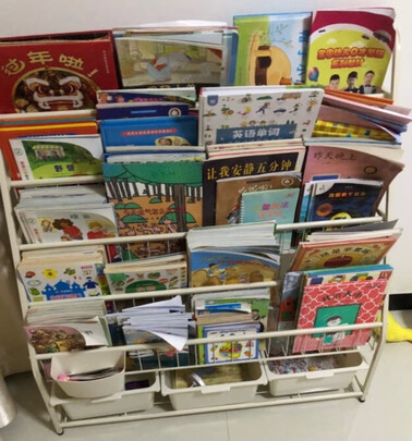 很不错的书架,有了它以后家里干净多了,孩子也会自己收纳,很稳,放玩具也可以,很不错的商品,大家可以一起买起来,放二十几本书没得问题的。