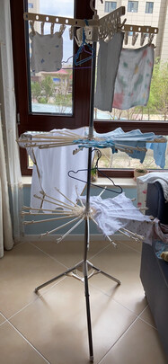晾衣架收到了,京东快递的水准还是一如既往的优秀,特别的好,打开快递包装后,还在考虑会不会有异味,但是当我打开之后我发现全然没有一点味道,然后我就迅速组装起来了,嗯......除了有一点不结实,其他的都挺好,用起来很方便