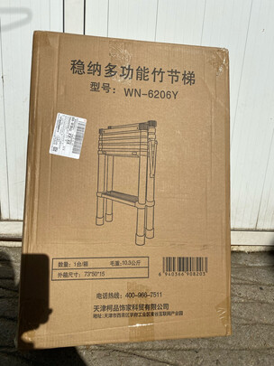包装特别好,超想象的轻,支起来感觉腿不平有点晃,踩上去却非常平稳,家里买过的第三个这种梯子,相信品牌质量,轻便稳定180斤的胖子踩上都没有问题