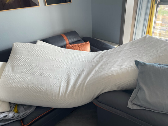 包装很精致,内赠了一个切包装的小刀很贴心,刚刚开始是压缩过的切开塑料袋等一会就好了尺寸合适,很软躺在上面很舒服,买的时候还送了一个枕头,不过刚打开的时候味道有点大,放久了就没了,枕头也是一样的。京东快递非常快,晚上下单隔天就到了。