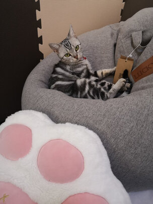 长的很好看,大小也很合适,猫很喜欢,躺着坐着都行(很耐抓哎好评)。是有点味道,但散两天就可以了没什么问题。啊,对于人来说,一米六身高是完全足够的,再高点我也不清楚了(笑)