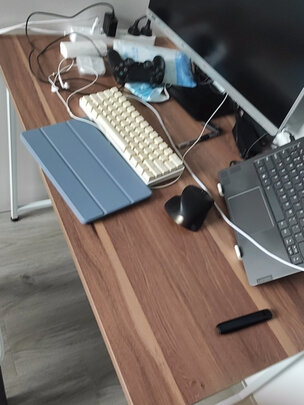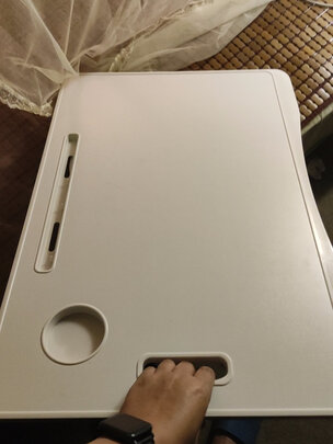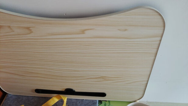 很好的一款小桌子,灰色的皮革桌面,淡雅耐脏又不反光,不用单独在放鼠标垫;大桌面除了放笔记本,还能再放其他资料;桌腿可以调节高度,桌面可以调节角度,总能找到适合自己的位置!滑雪板样的桌腿不会划破床单,棒??